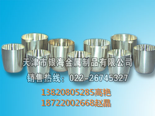 天津市銀海金屬制品有限公司主要生產(chǎn)加工鉑金坩堝、鉑金皿、黃鉑合金異形坩堝、鉑金絲、黃金坩堝、銀坩堝、銀燒杯、鐵坩堝、鎳坩堝、包鉑坩堝鉗子、瑪瑙研缽、純銀絲、純銀片、銀粉、剛玉坩堝等金屬制品,我公司的生產(chǎn)工藝嚴(yán)謹(jǐn)、技術(shù)先進(jìn)、經(jīng)驗豐富,產(chǎn)品銷往全國各地。 公司承諾:保證產(chǎn)品價格優(yōu)惠、質(zhì)量可靠,熱情周到的服務(wù),歡迎廣大新老客戶選購我公司產(chǎn)品。